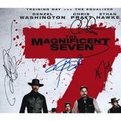 Autographed by Denzel Washington (デンゼル・ワシントン), Chris Pratt (クリス・プラット), Ethan Hawke (イーサン・ホーク), Lee Byung-hun (イ・ビョンホン), Martin Sensmeier (マーティン・センスマイアー), Manuel Garcia-Rulfo (マヌエル・ガルシア=ルルフォ), and Vincent D'Onofrio (ヴィンセント・ドノフリオ)