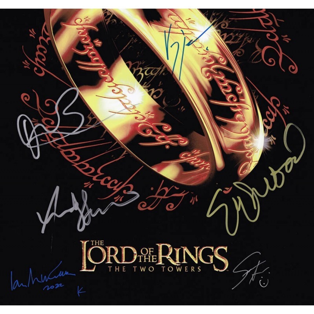 Autographed by Elijah Wood (イライジャ・ウッド), Viggo Mortensen (ヴィゴ・モーテンセン), Sean Astin (ショーン・アスティン), Orlando Bloom (オーランド・ブルーム), Andy Serkis (アンディ・サーキス), and Ian McKellen (イアン・マッケラン)