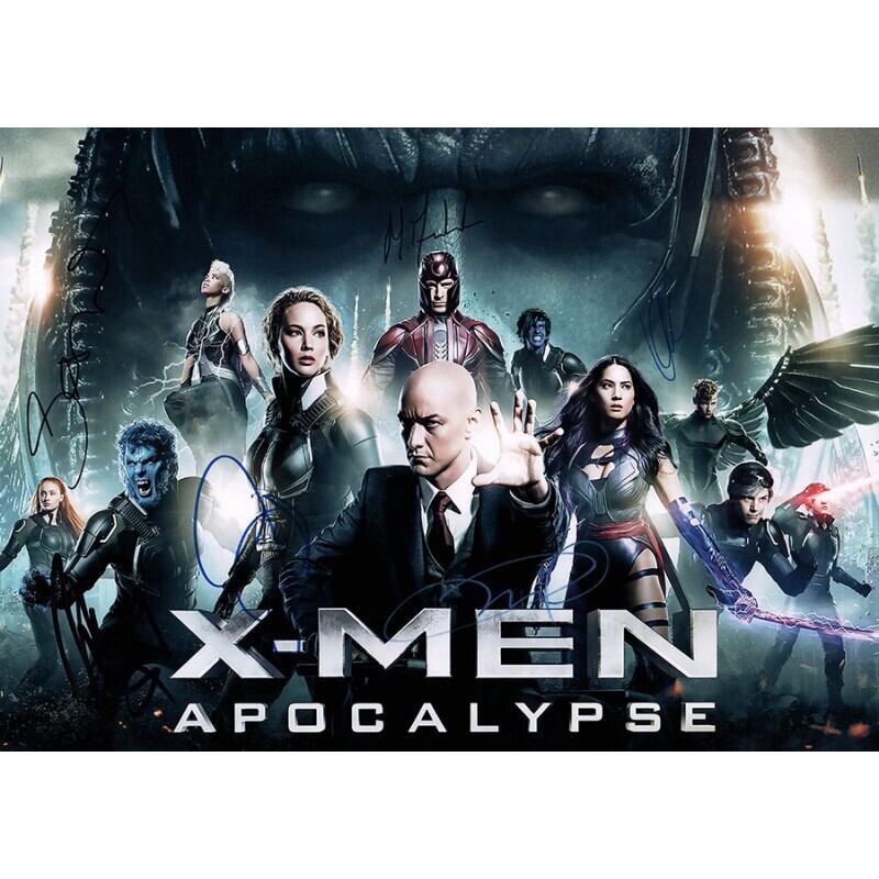 Autographed by Jennifer Lawrence (ジェニファー・ローレンス), Olivia Munn (オリヴィア・マン), Michael Fassbender (マイケル・ファスベンダー), James McAvoy (ジェームズ・マカヴォイ), Sophie Turner (ソフィー・ターナー) and Nicholas Hoult (ニコラス・ホルト)