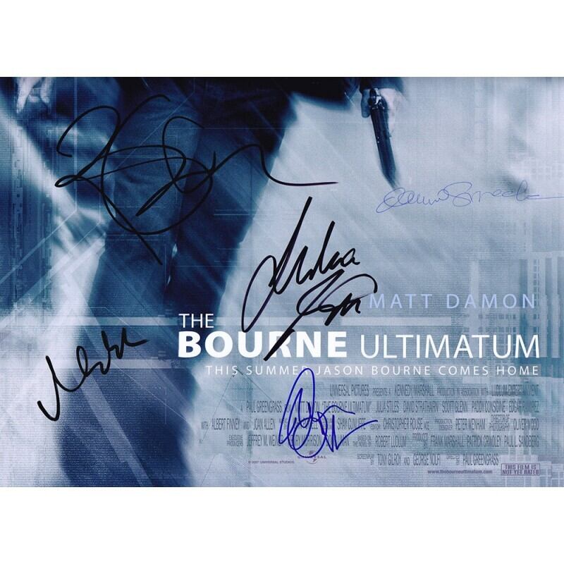 autographed by Matt Damon(マット・デイモン), Julia Stiles(ジュリア・スタイルズ), Joan Allen(ジョアン・アレン), David Strathairn(デビッド・ストラザーン), Paddy Considine(パディ・コンシダイン)