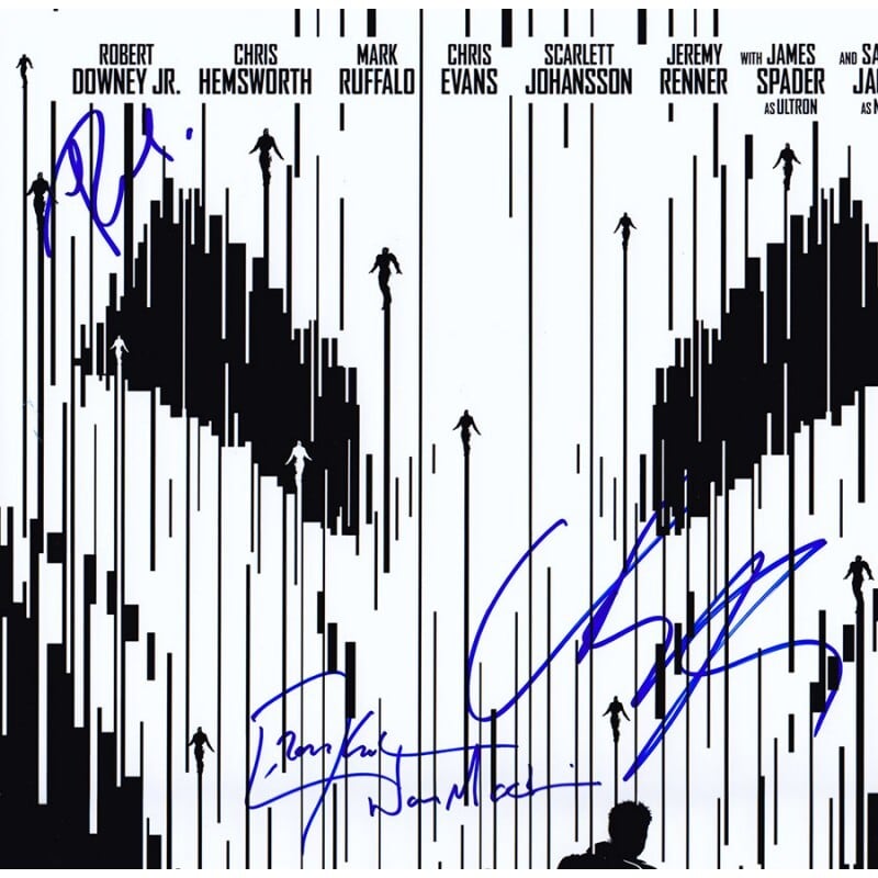 autographed by Robert Downey Jr(ロバート・ダウニー・ジュニア)., Scarlett Johansson(スカーレット・ヨハンソン), Chris Hemsworth(クリス・ヘムスワース), Chris Evans(クリス・エバンス), Jeremy Renner(ジェレミー・レナー), Mark Ruffalo(マーク・ラファロ),Don Cheadle(ドン・チードル)and Samuel L. Jackson(サミュ・エル・ジャクソン)