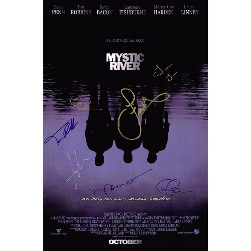 autographed by Sean Penn(ショーン・ペン), Laura Linney(ルーラ・リニー), Kevin Bacon(ケビン・ベーコン), Marcia Gay Harden(マーシャ・ゲイ・ハーデン), Laurence Fishburne(ローレンス・フィッシュバーン), Tim Robbins(ティム・ロビンス),and novel writer Dennis Lehane(デニス・レハン)