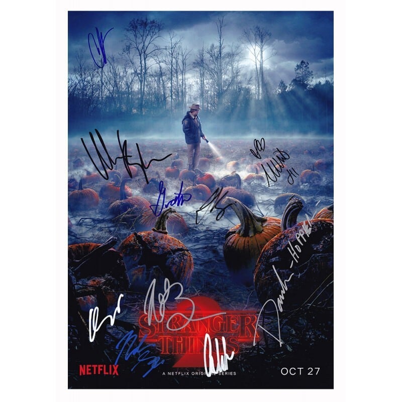 Autographed by Winona Ryder(ウィノナ・ライダー), Millie Bobby Brown(ミリー・ボビー・ブラウン), David Harbour(デヴィッド・ハーバー), Finn Wolfhard(フィン・ヴォルフハルト), Gaten Matarazzo(ガテン・マタラッツォ), Caleb McLaughlin(ケイレブ・マクラフリン), Noah Schnapp(ノア・シュナップ), Natalia Dyer(ナタリー・ダイヤー), Joe Keery(ジョー・キーリー), Charlie Heaton(チャーリー・ヒートン).