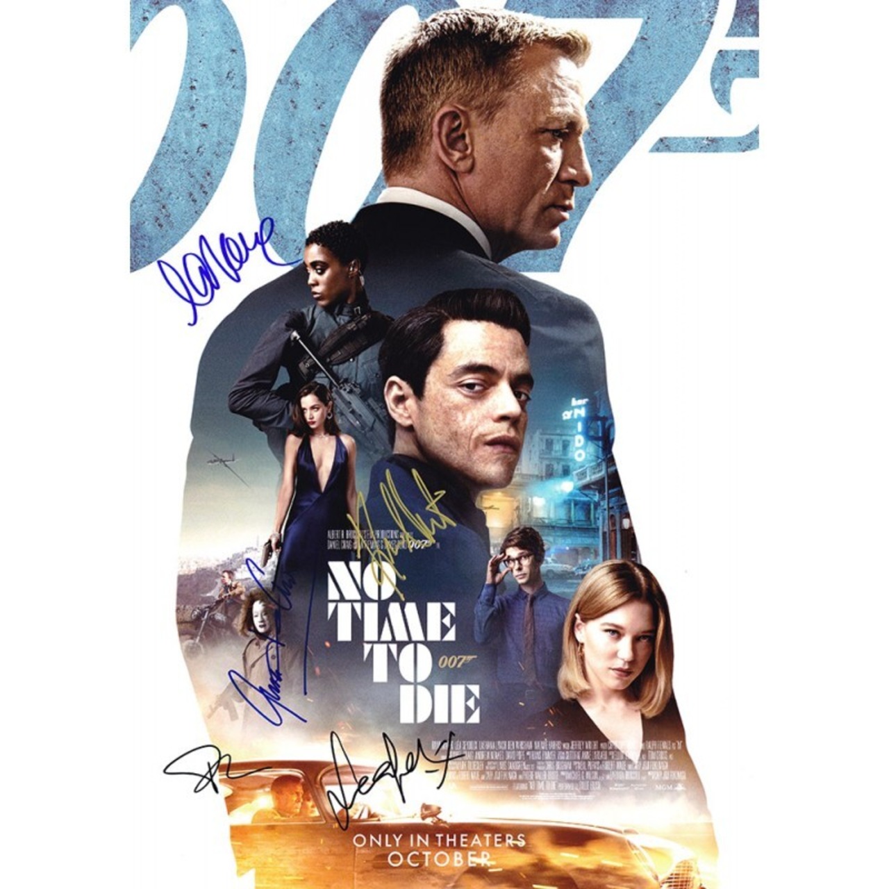 Autographed by Daniel Craig(ダニエル・クレイグ), Lea Seydoux(レア・セドゥ), Rami Malek(ラミ・マレック), Ana de Armas(アナ・デ・アルマス).Lashana Lynch(ラシャーナ・リンチ)