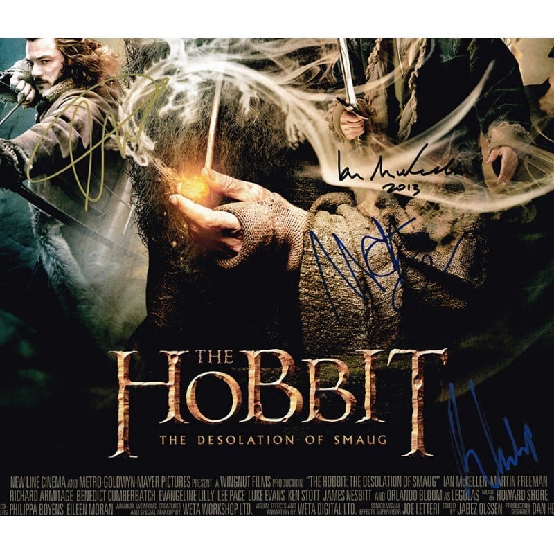Autographed by Ian McKellen(イアン・マッケラン), Martin Freeman(マーティン・フリーマン), Evangeline Lilly(エバンジェリン・リリー), Lee Pace(リー・ペイス), Luke Evans(ルーク・エバンス), Richard Armitage(リチャード・アーミテージ), and Orlando Bloom(オーランド・ブルーム)