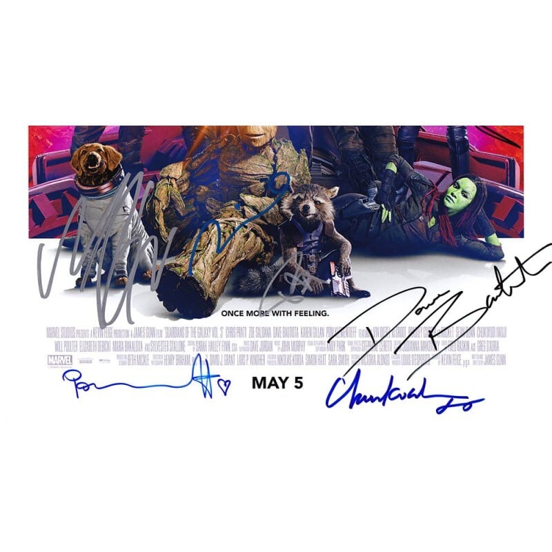 Autographed by Chris Pratt(クリス・プラット), Zoe Saldana(ゾーイ・サルダナ), Bradley Cooper(ブラッドリー・クーパー), Dave Bautista(デーブ・バウティスタ), KarenGillan(カレン・ギラン), Vin Diesel(ビン・ディーゼル), Pom Klementieff(ポム・クレメンティエフ), Sean Gunn(ショーン・ガン),Chukwudi Iwuji(チュク・イウジ), Maria Bakalova(マリア・バカローバ),Elizabeth Debicki(エリザベス・デビッキ).and Will Poulter(ウィル・ポールター)
