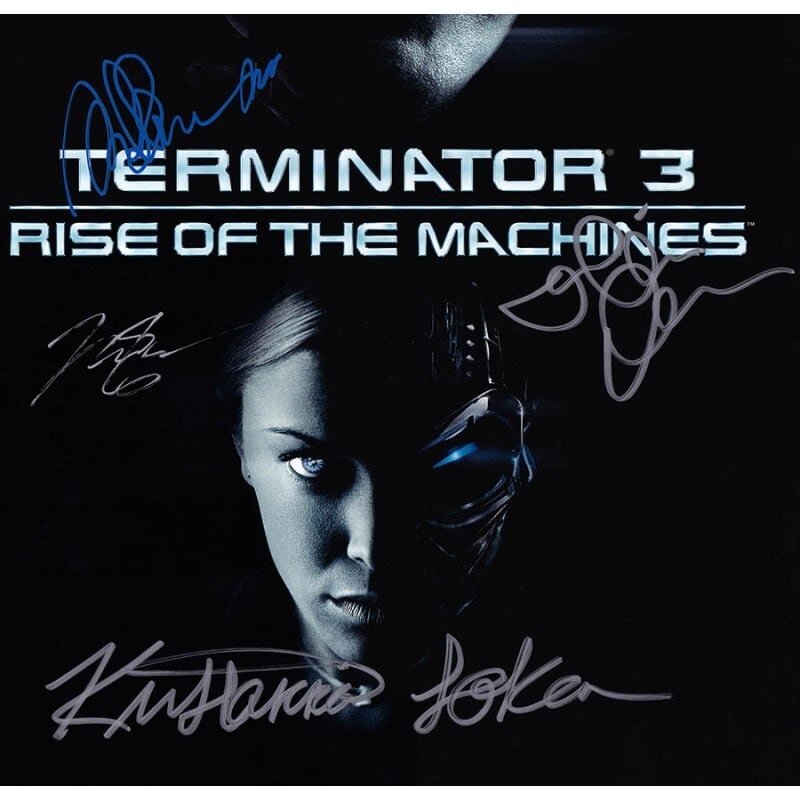 Autographed by Arnold Schwarzenegger (アーノルド・シュワルツェネッガー), Nick Stahl (ニック・スタール), Claire Danes (クレア・デインズ), and Kristanna Loken (クリスタナ・ローケン)